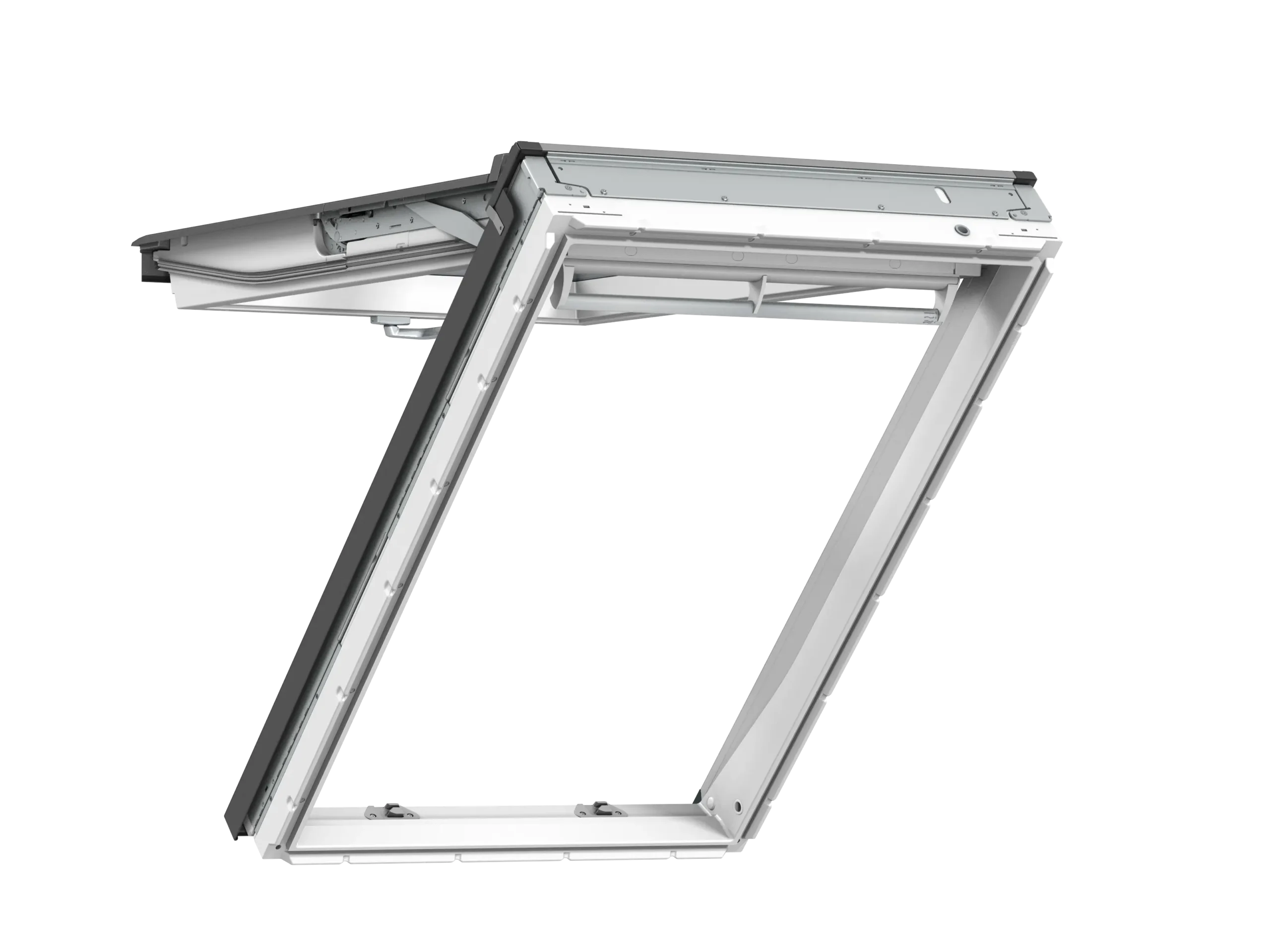Fereastra de mansardă cu operare de jos și articulare în partea superioară, VELUX GPU, se deschide spre exterior pentru a vă oferi o priveliște panoramică și senzația de spațiu mai mare la interior. Finisajul durabil, rezistent la umezeală, arată excelent în orice cameră și este ideal pentru încăperile cu umiditate ridicată, cum ar fi bucătăriile.