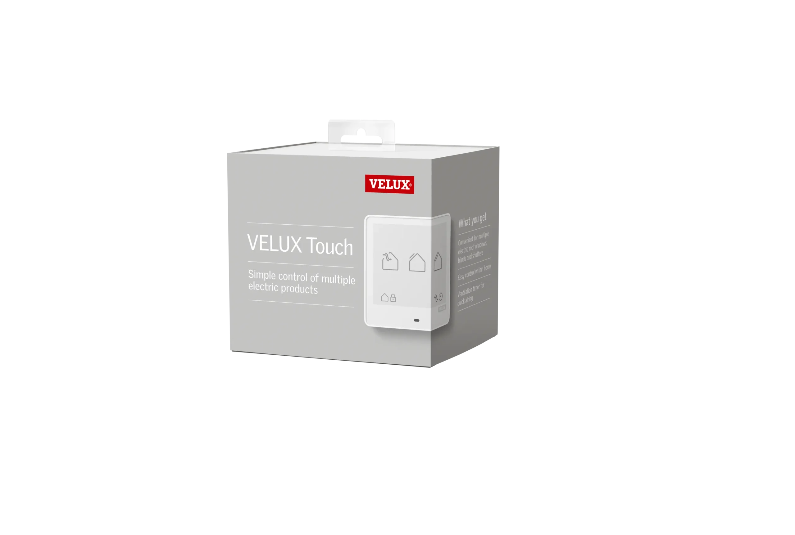 VELUX Touch este noua noastră metodă de control, care permite proprietarilor să acționeze mai multe produse (ferestre de mansardă VELUX, rulouri și rolete exterioare) de la un singur întrerupător. VELUX Touch permite reglarea ușoară și rapidă a cantității de lumină naturală și a aerului proaspăt din casă. Dispune de un temporizator de ventilare de 15 minute și o opțiune de închidere. Funcționează fără Wi-Fi, deci este opțiunea de control perfectă pentru proprietarii care nu sunt interesați să-și controleze produsele prin aplicații sau senzori.